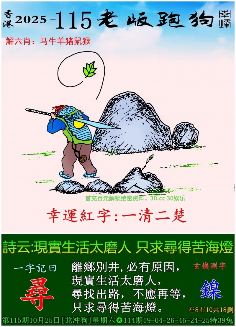 | 120期:一字解特码玄机字【發】 解析:资料更新 综合生肖:资料更新 |